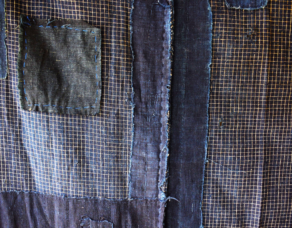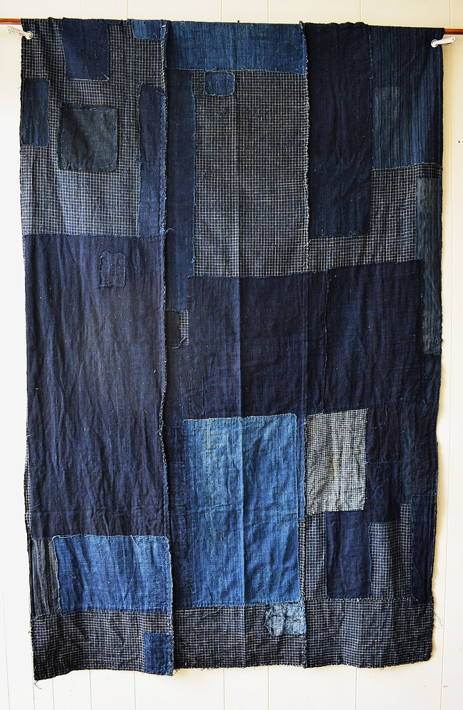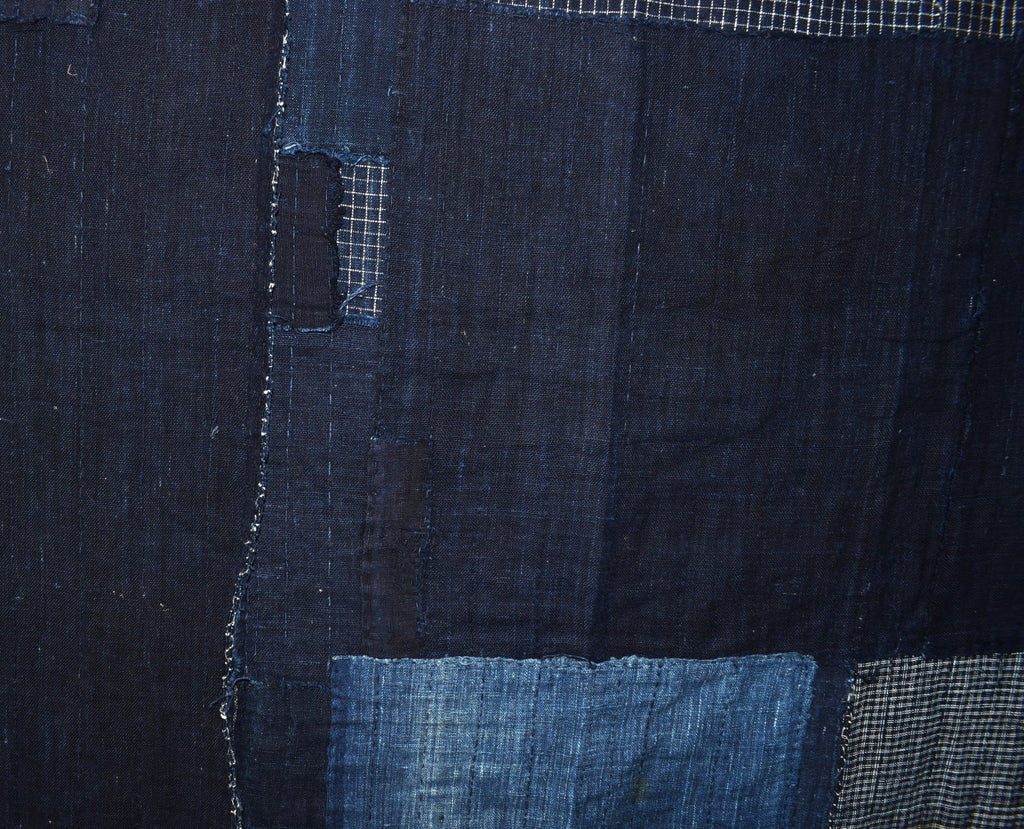 Antique Indigo  Check Boro Futonji